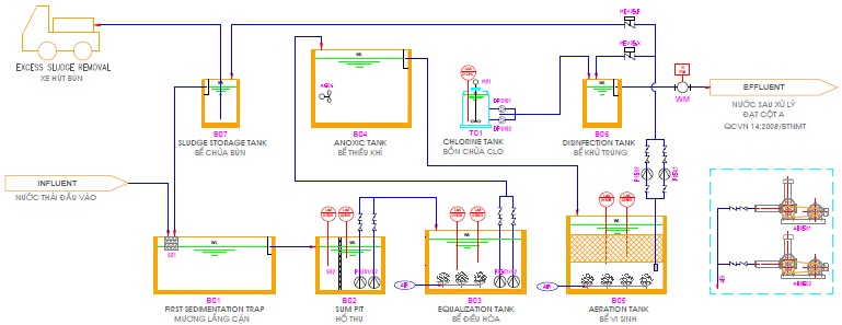 - Dây chuyền công nghệ xử lý nước thải khách sạn