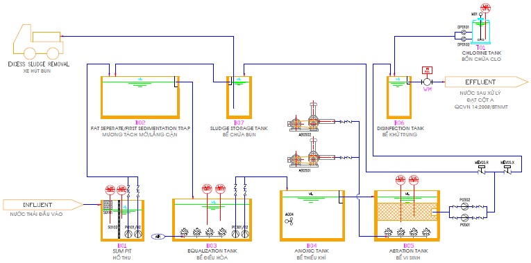 - Dây chuyền công nghệ xử lý nước thải nhà hàng