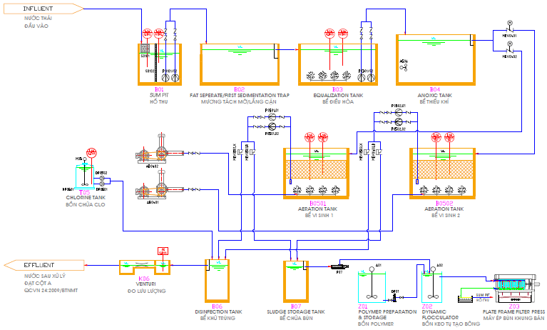 Dây chuyền công nghệ xử lý nước thải nhà máy chế biến thực phẩm tươi, đông lạnh (MODEL: FFF.S-02)