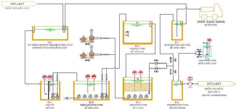 - Dây chuyền công nghệ xử lý nước thải nhà hàng