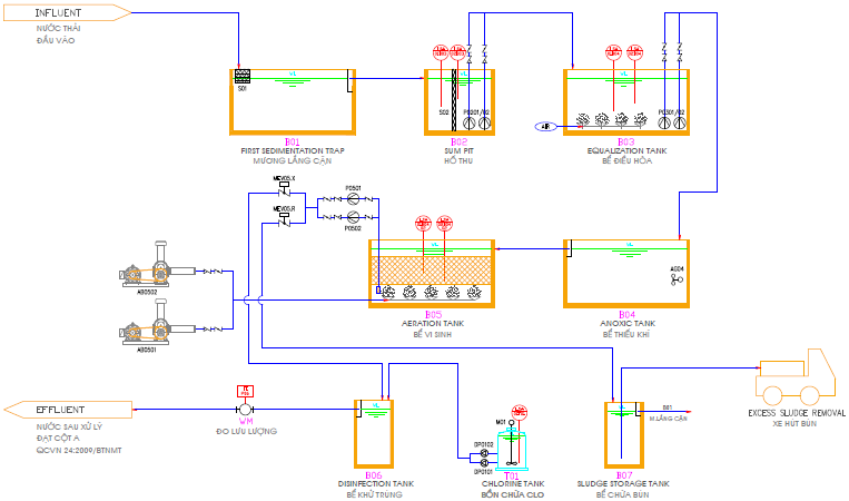 - Dây chuyền công nghệ xử lý nước thải nhà hàng