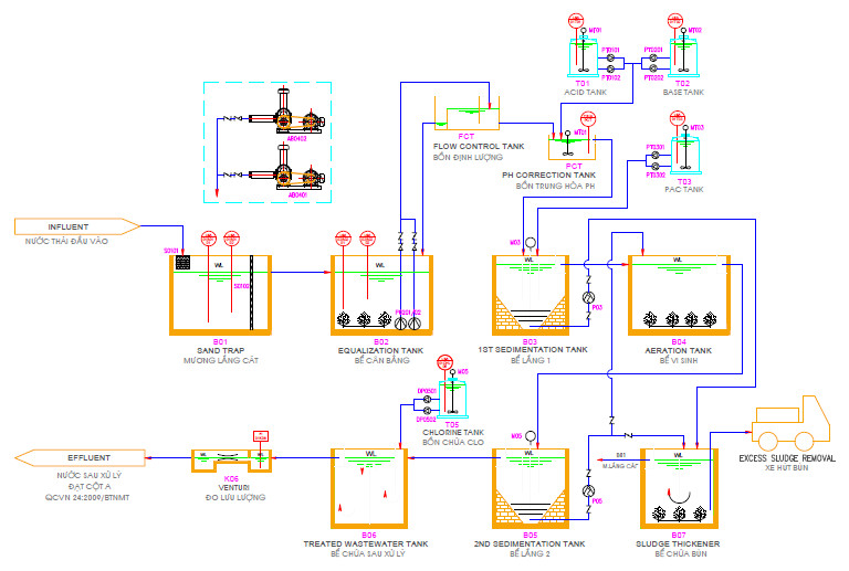 - Dây chuyền công nghệ xử lý nước thải trường học