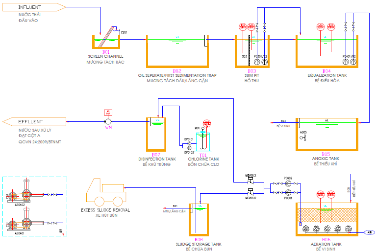 Sơ đồ dây chuyền công nghệ xử lý nước thải nhà máy lắp ráp & chế tạo xe