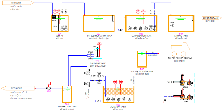 - Dây chuyền công nghệ xử lý nước thải trường học