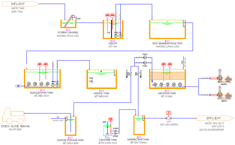 - Dây chuyền công nghệ xử lý nước thải trường học
